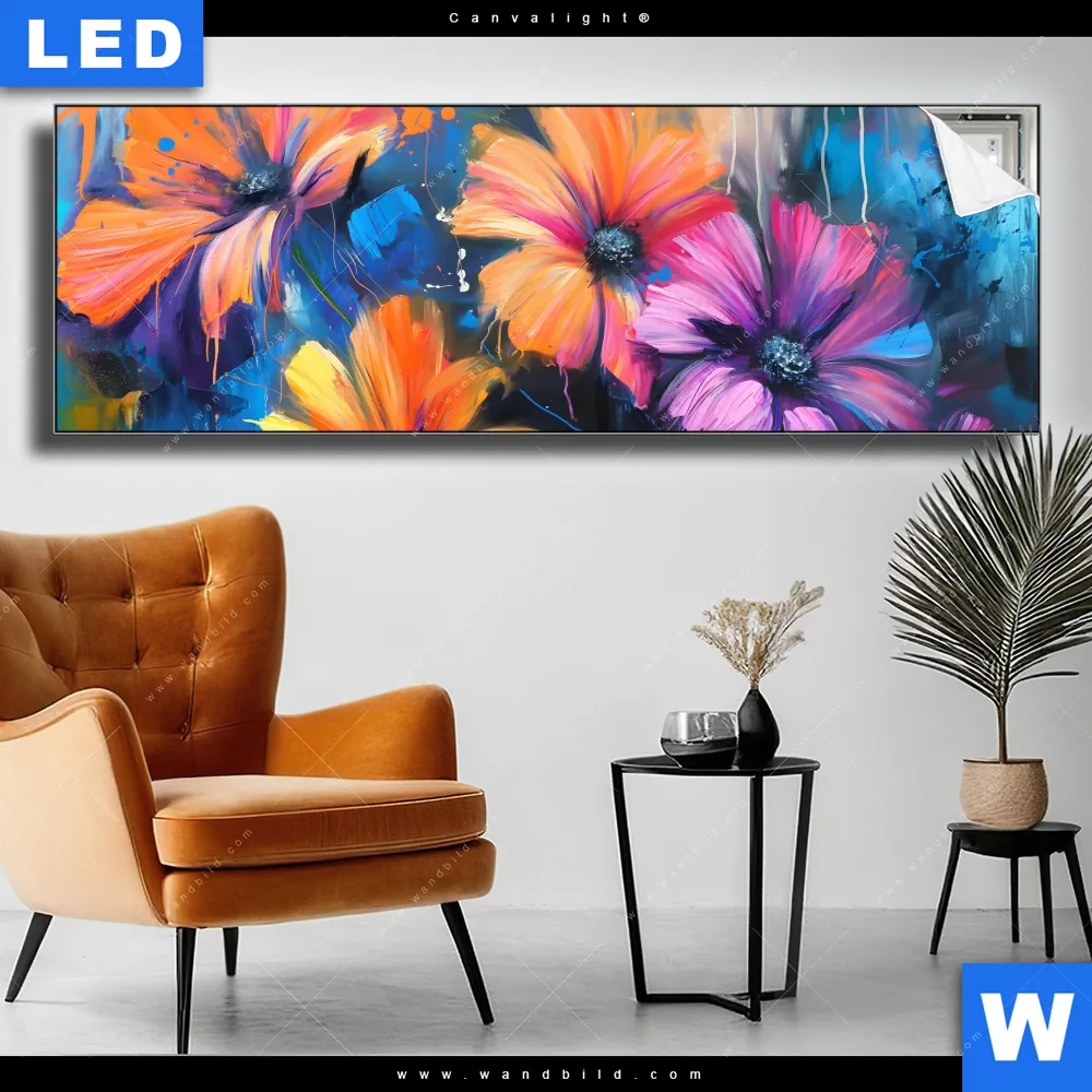 Canvalight® TEX Leuchtbild | Abstrakte Blumenpracht | Panorama