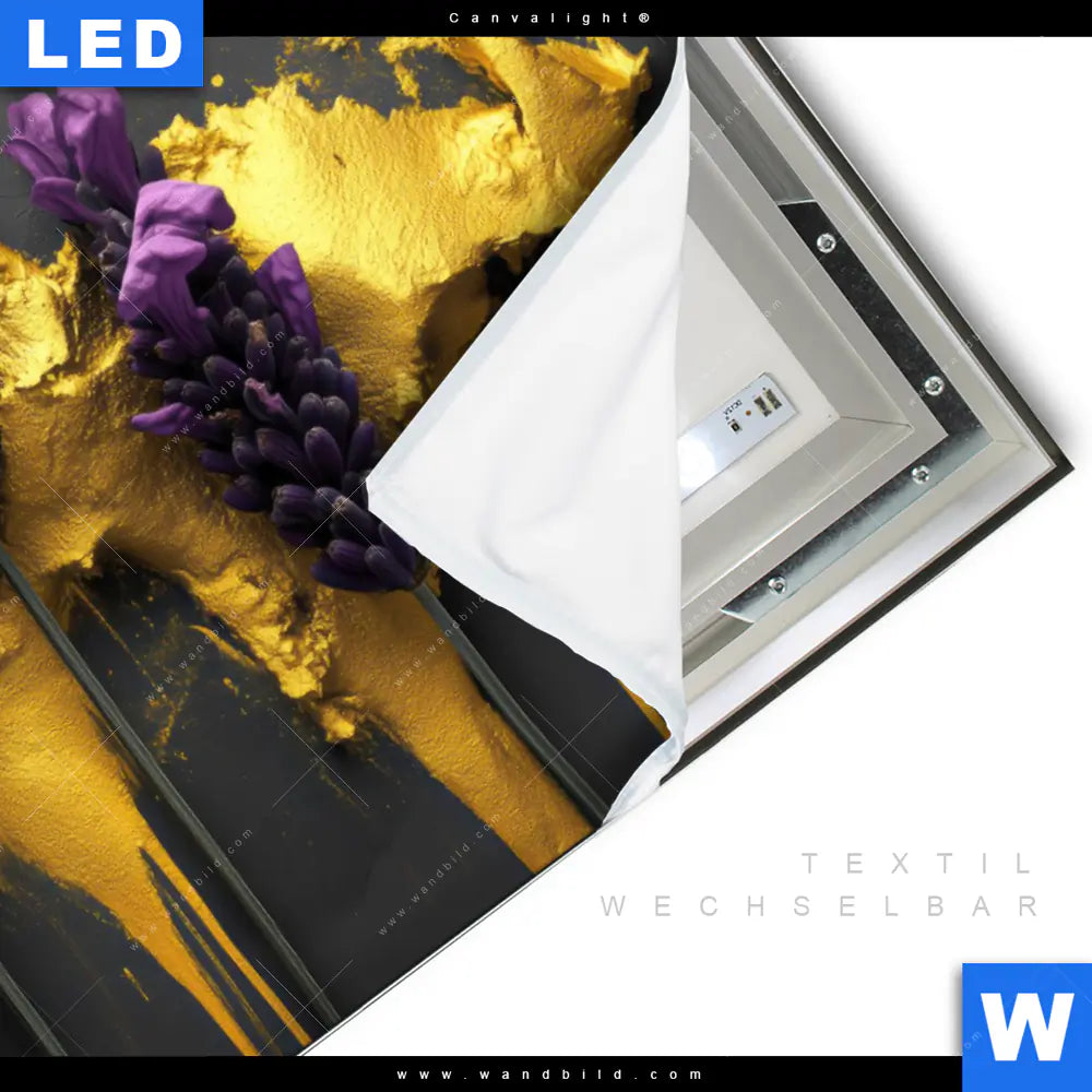 Canvalight® TEX Leuchtbild | Abstrakte Lavendel-Kunst | Querformat