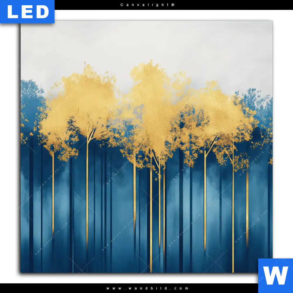 Canvalight® Leuchtbild | Abstrakter Wald - Blau & Gold | Quadrat