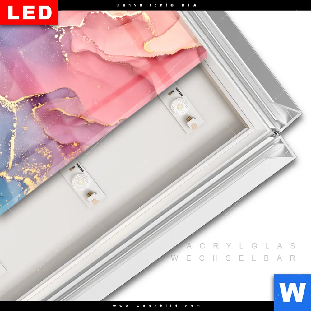 LED-Glasbild mit austauschbarem Acrylglas-Druck (Wechselbild)