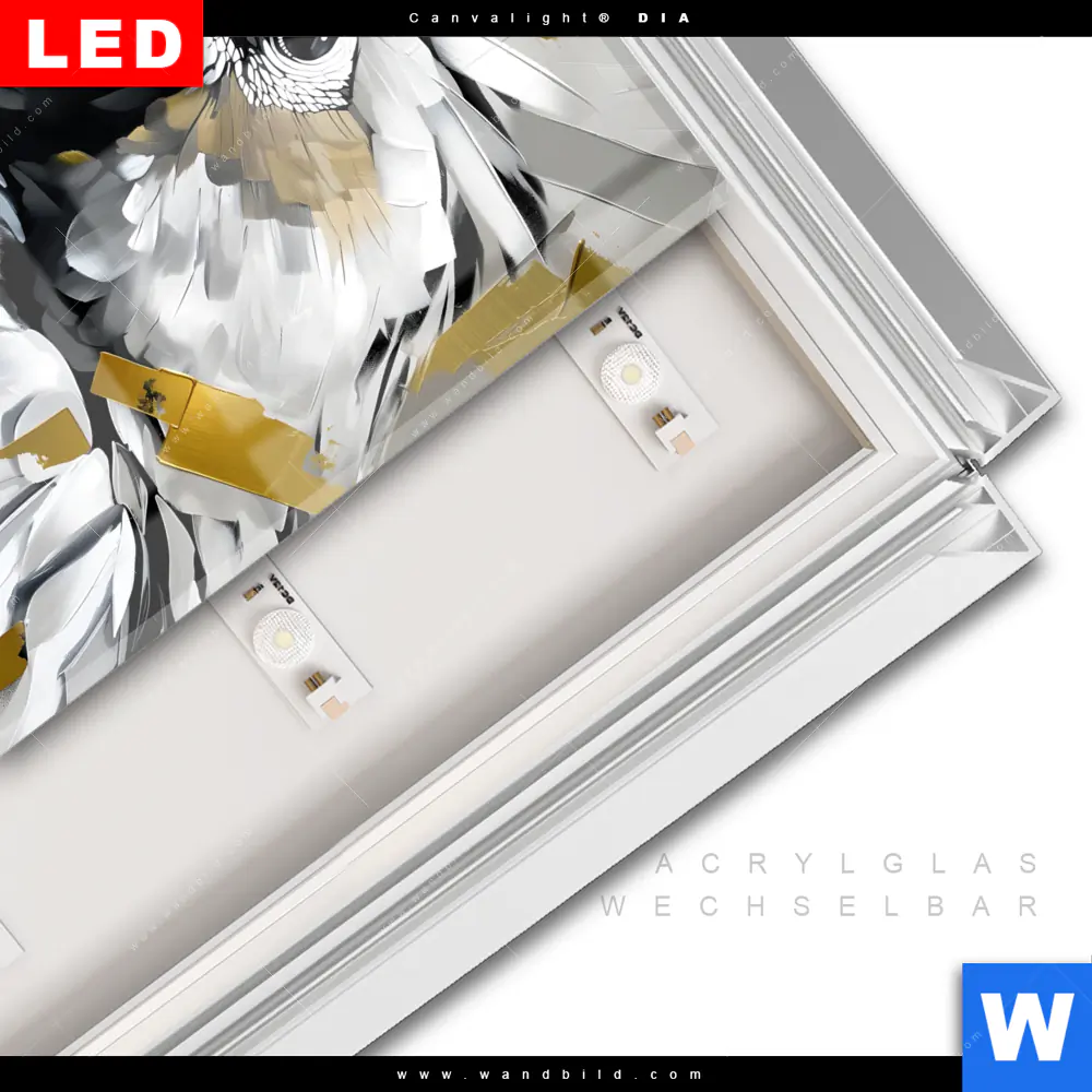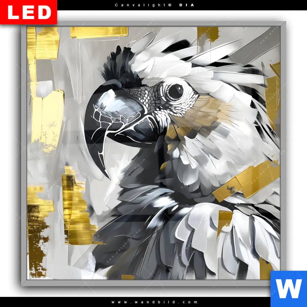 Canvalight® DIA Leuchtbild | Abstrakter Papagei mit Gold | Quadrat