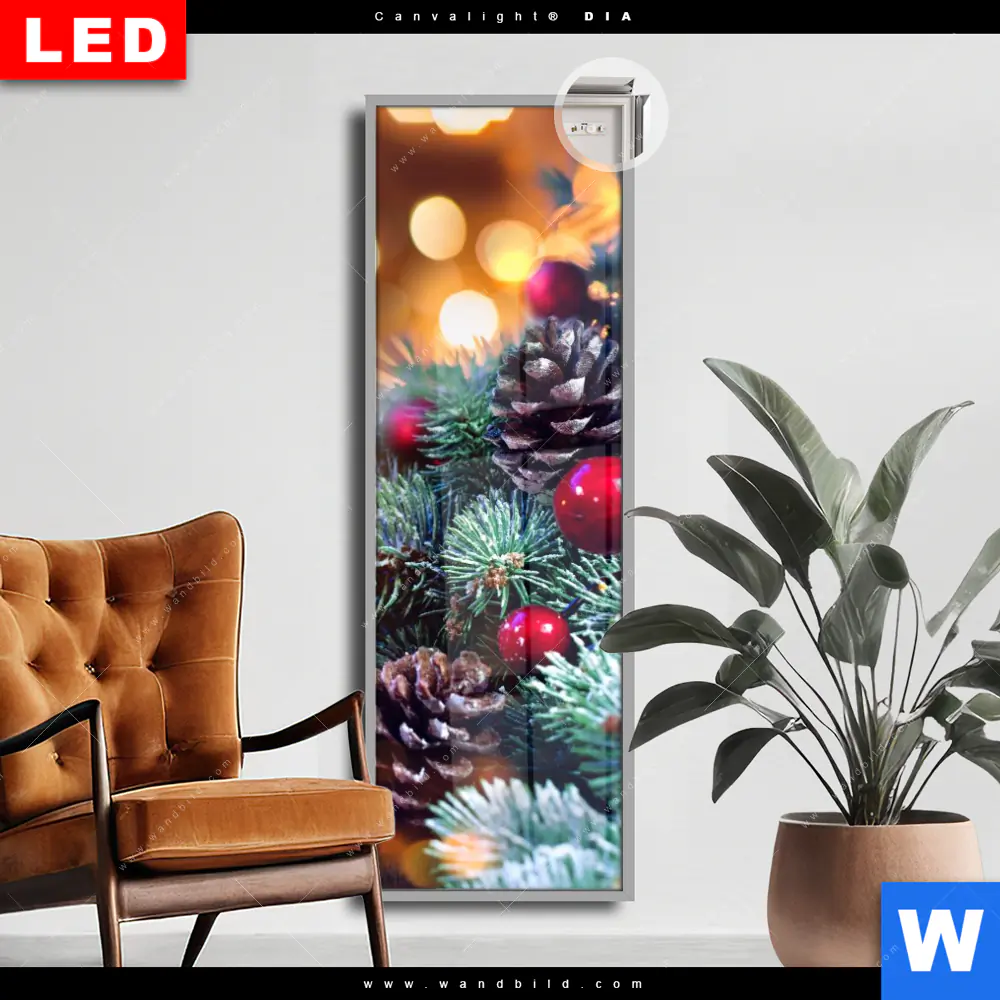 Canvalight® DIA Leuchtbild | Adventskerze mit Weihnachtsschmuck | Schmal