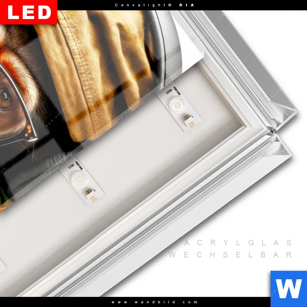 LED-Glasbild mit austauschbarem Acrylglas-Druck (Wechselbild)