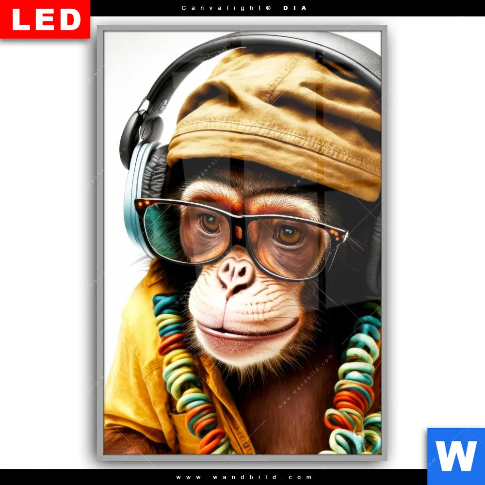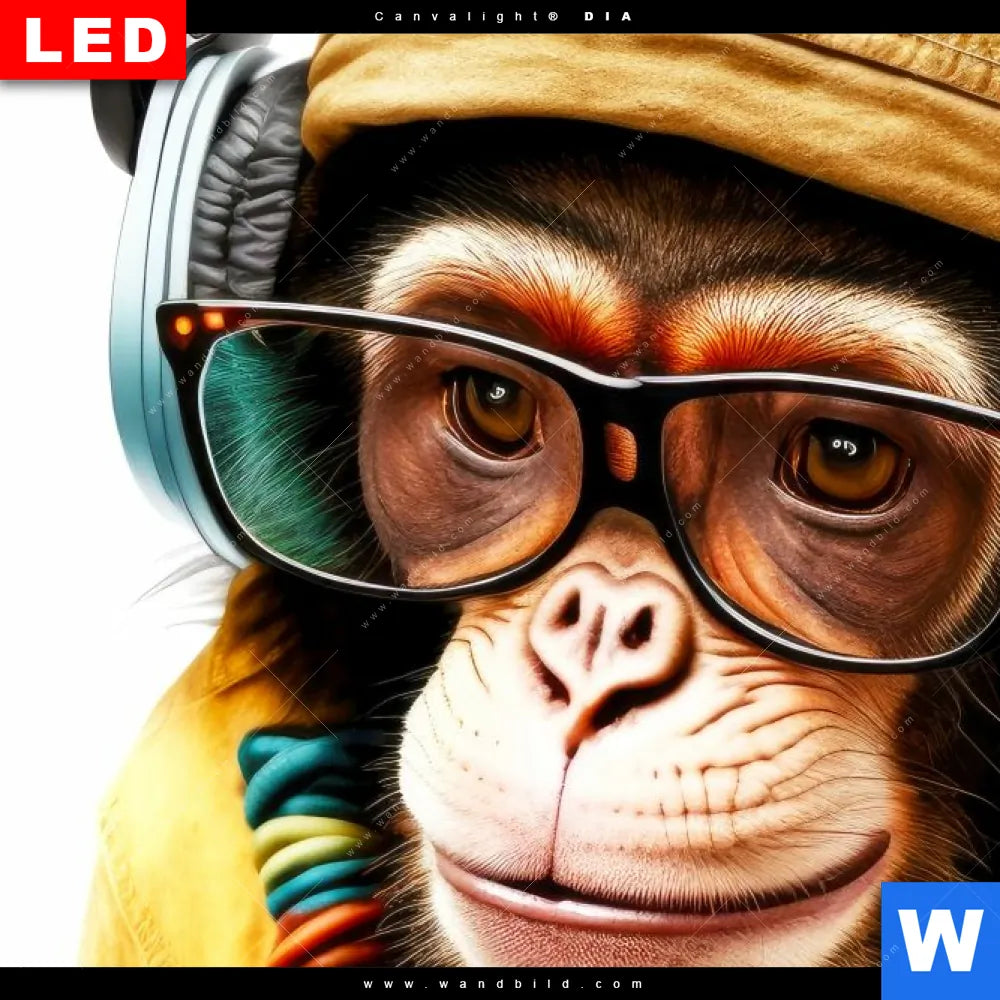 Canvalight® DIA Leuchtbild | Affe mit Kopfhörern & Brille | Hochformat