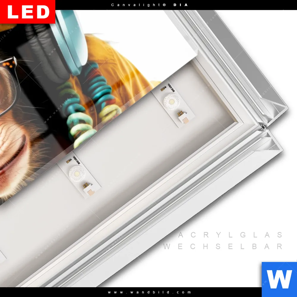 LED-Glasbild mit austauschbarem Acrylglas-Druck (Wechselbild)