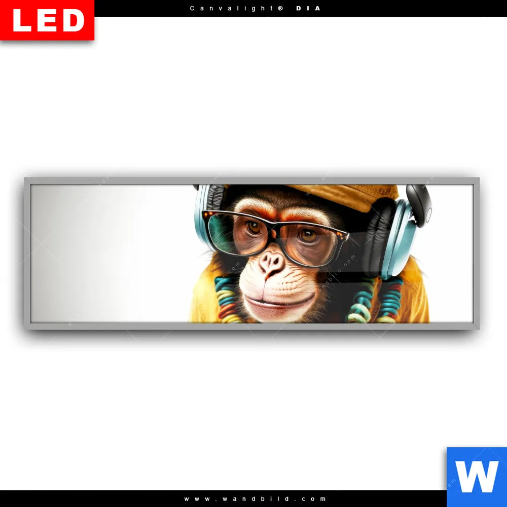 Canvalight® DIA Leuchtbild | Affe mit Kopfhörern & Brille | Panorama
