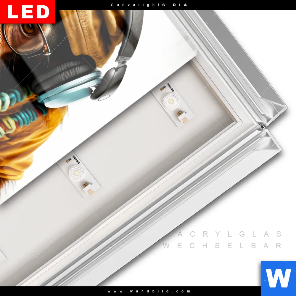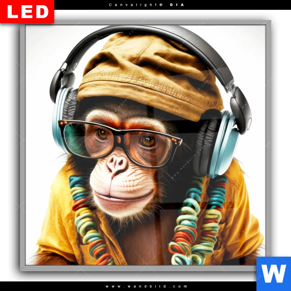Canvalight® DIA Leuchtbild | Affe mit Kopfhörern & Brille | Quadrat