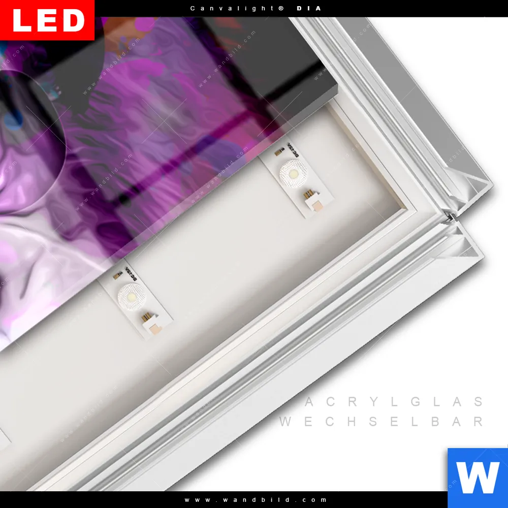 LED-Glasbild mit austauschbarem Acrylglas-Druck (Wechselbild)