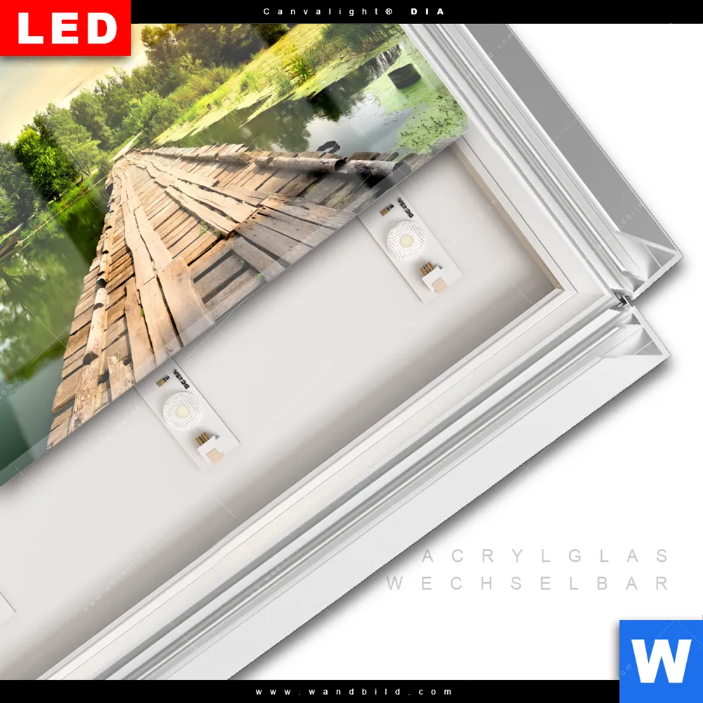 LED-Glasbild mit austauschbarem Acrylglas-Druck (Wechselbild)