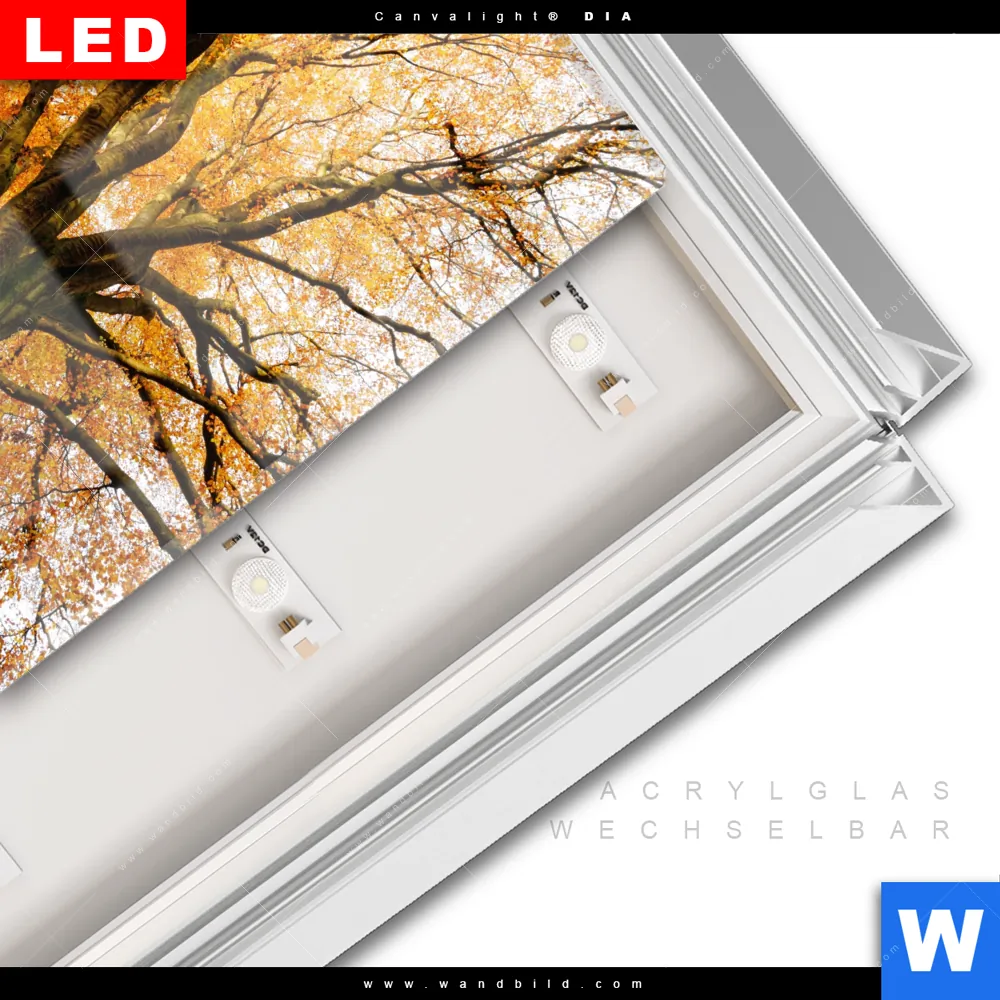 LED-Glasbild mit austauschbarem Acrylglas-Druck (Wechselbild)