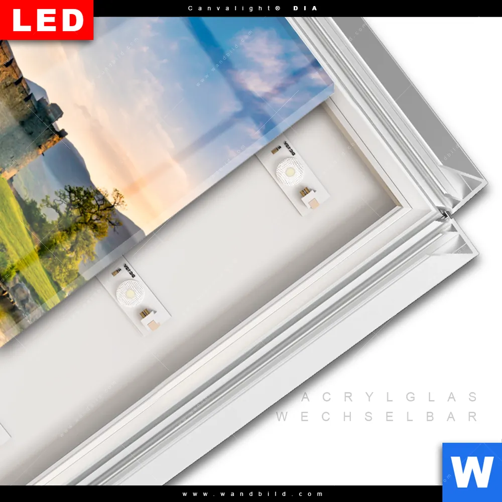 LED-Glasbild mit austauschbarem Acrylglas-Druck (Wechselbild)