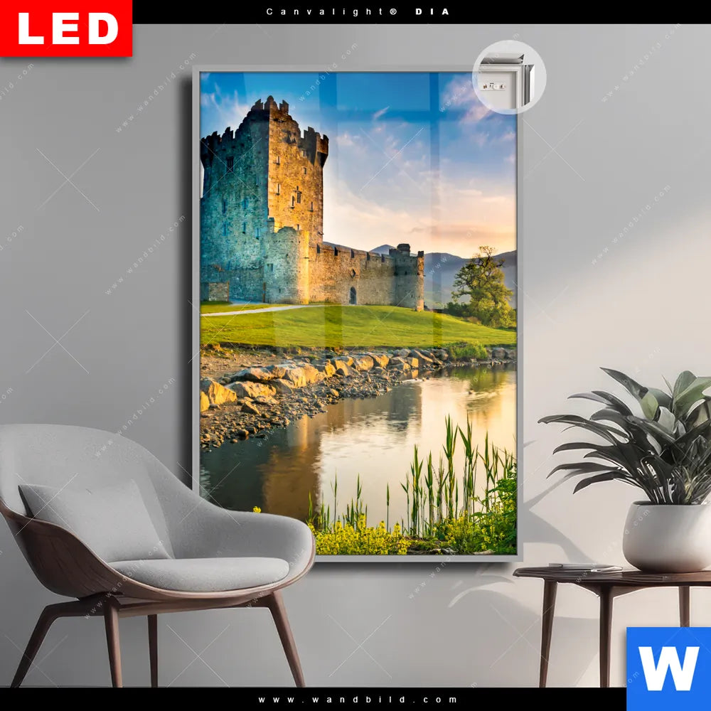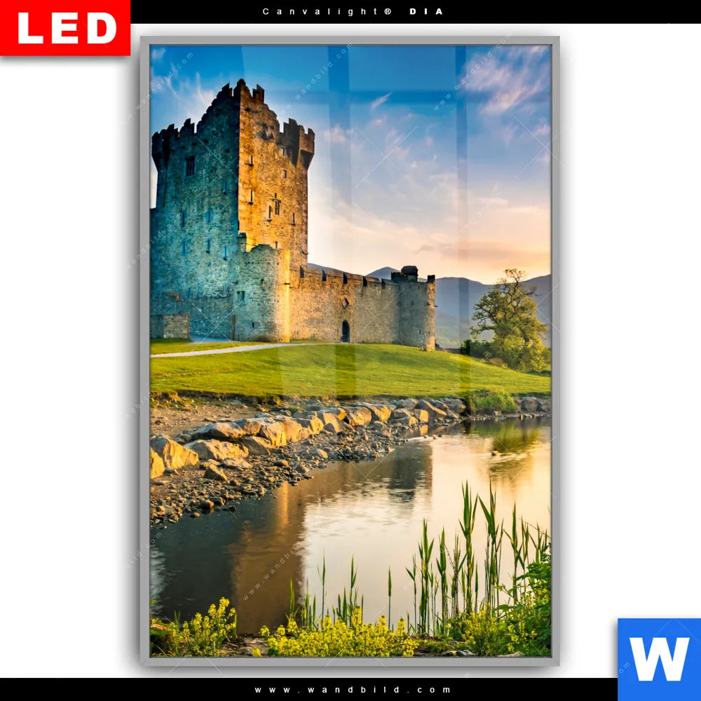 Canvalight® DIA Leuchtbild | Alte Burg mit See | Hochformat