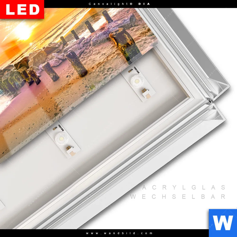 LED-Glasbild mit austauschbarem Acrylglas-Druck (Wechselbild)