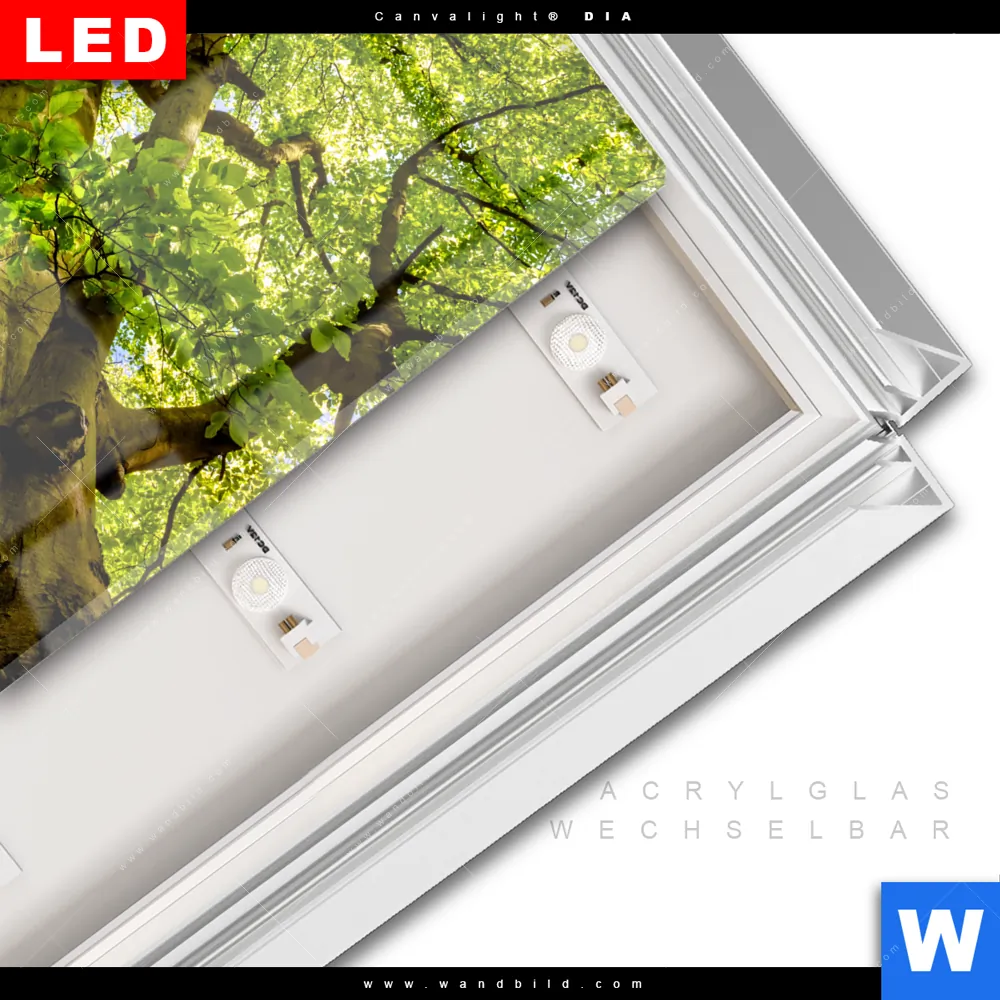 LED-Glasbild mit austauschbarem Acrylglas-Druck (Wechselbild)