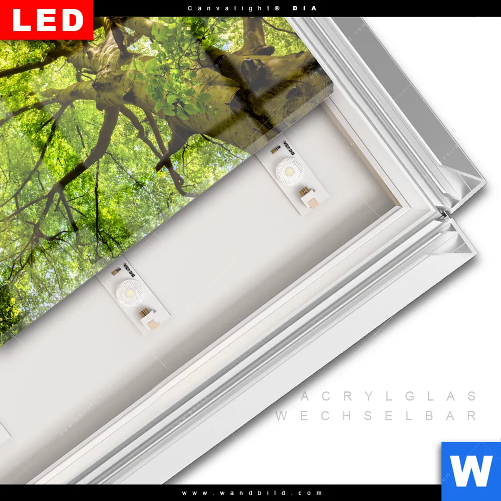 LED-Glasbild mit austauschbarem Acrylglas-Druck (Wechselbild)