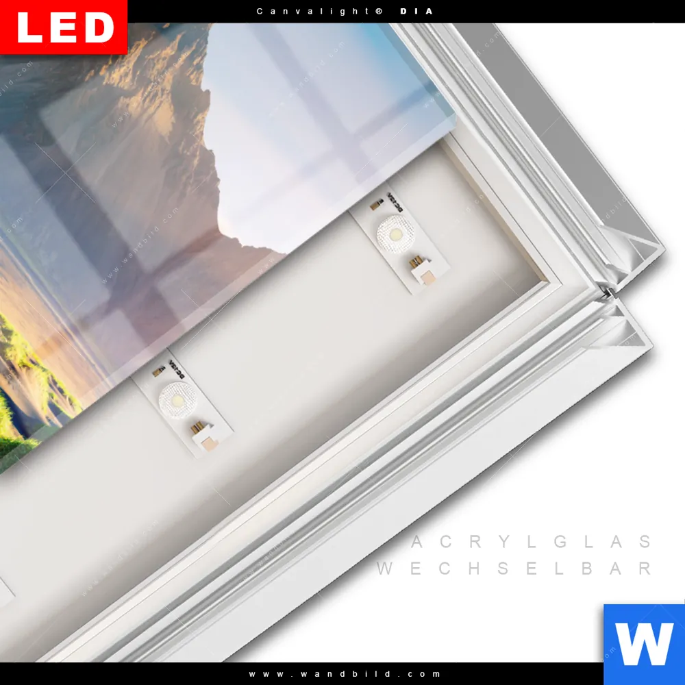LED-Glasbild mit austauschbarem Acrylglas-Druck (Wechselbild)