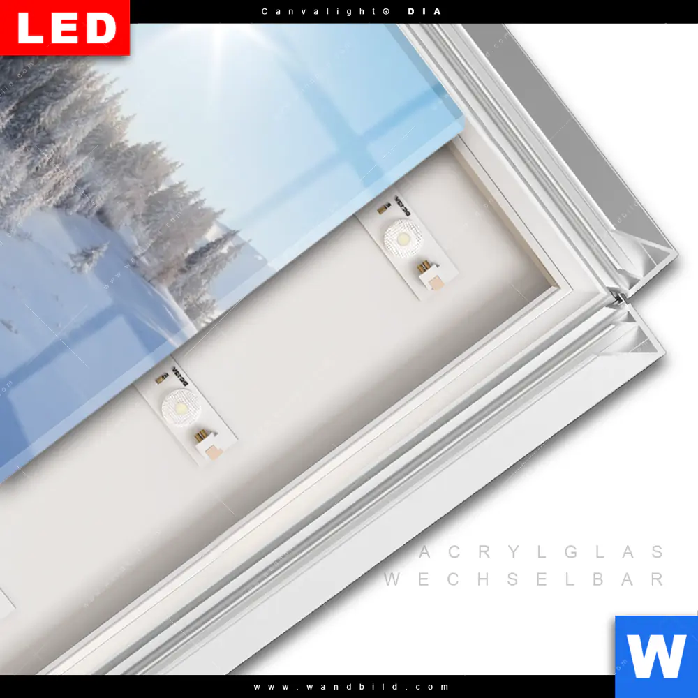 LED-Glasbild mit austauschbarem Acrylglas-Druck (Wechselbild)