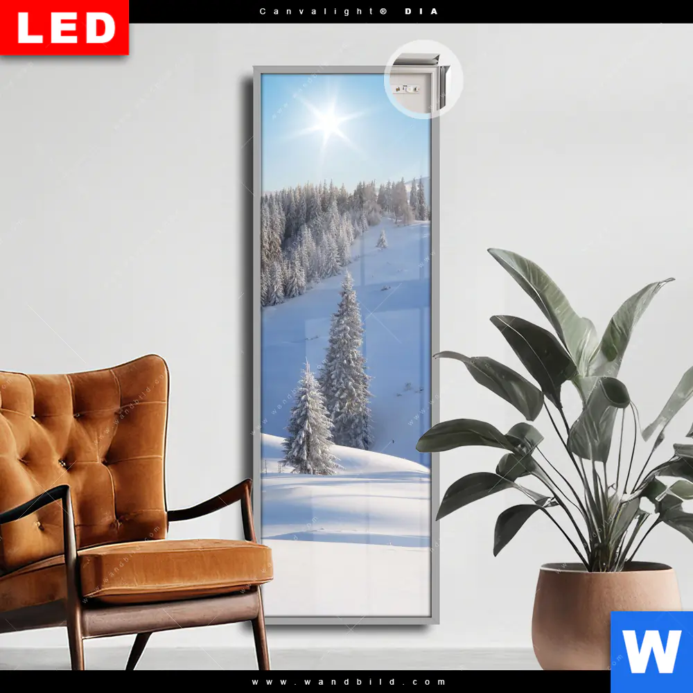 Canvalight® DIA Leuchtbild | Berge und Wälder in Schnee | Schmal
