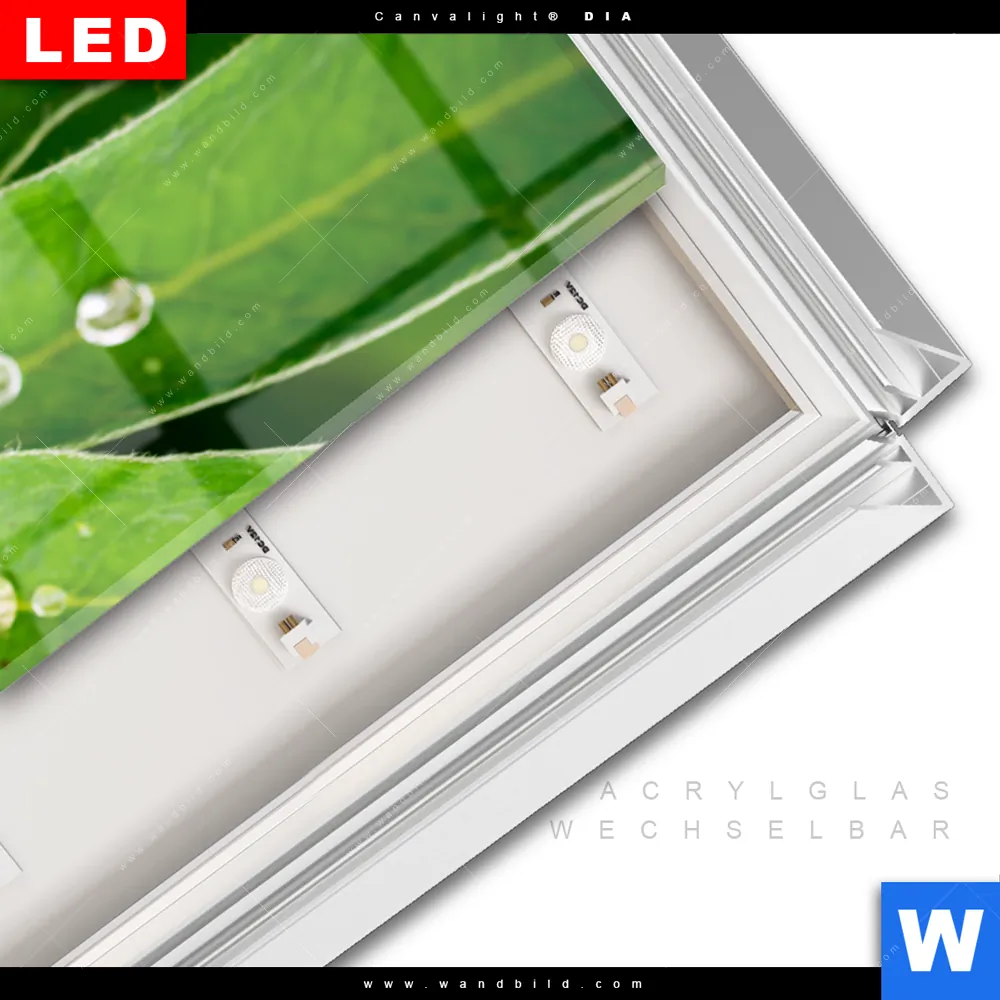LED-Glasbild mit austauschbarem Acrylglas-Druck (Wechselbild)