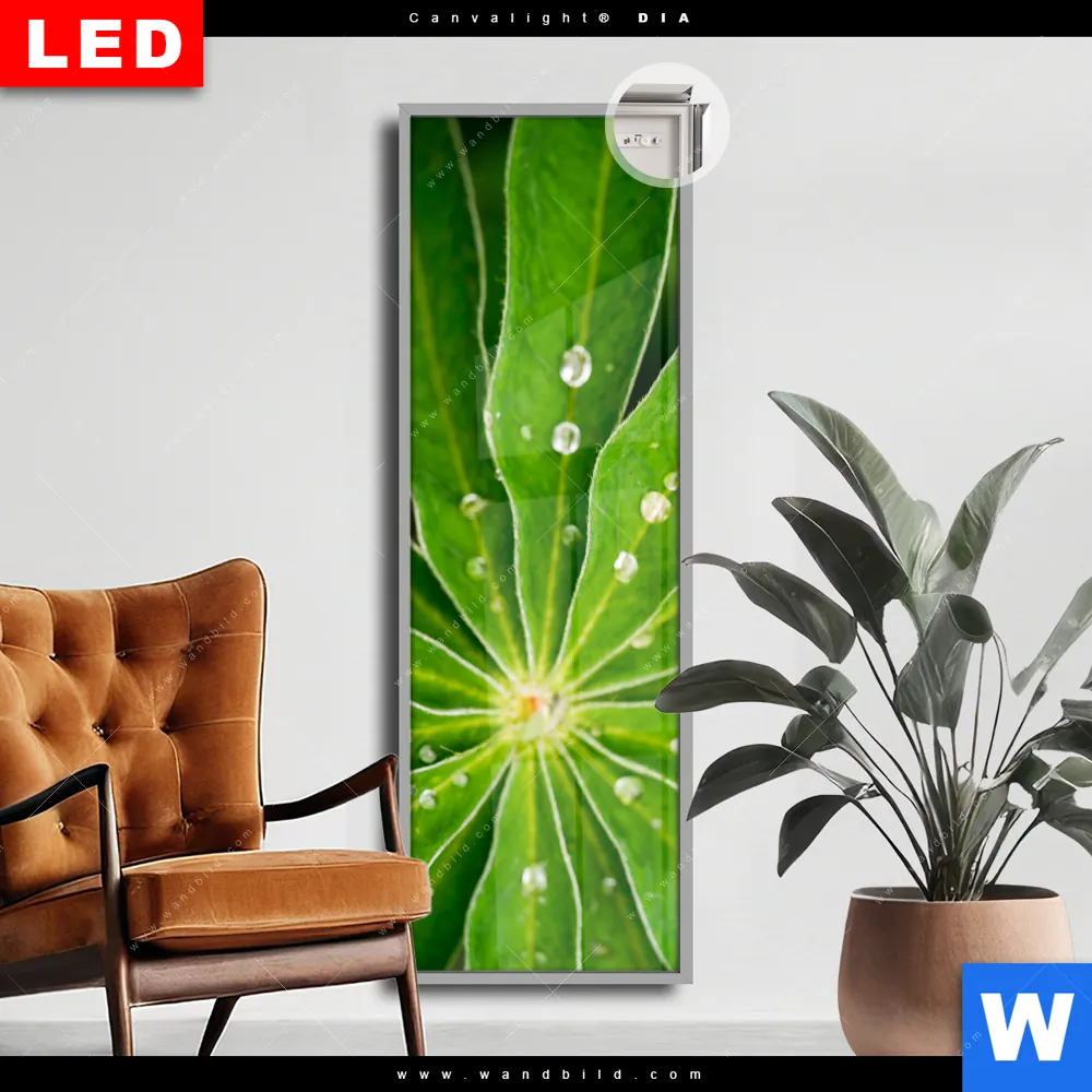 Canvalight® DIA Leuchtbild | Blatt mit Wassertropfen | Schmal