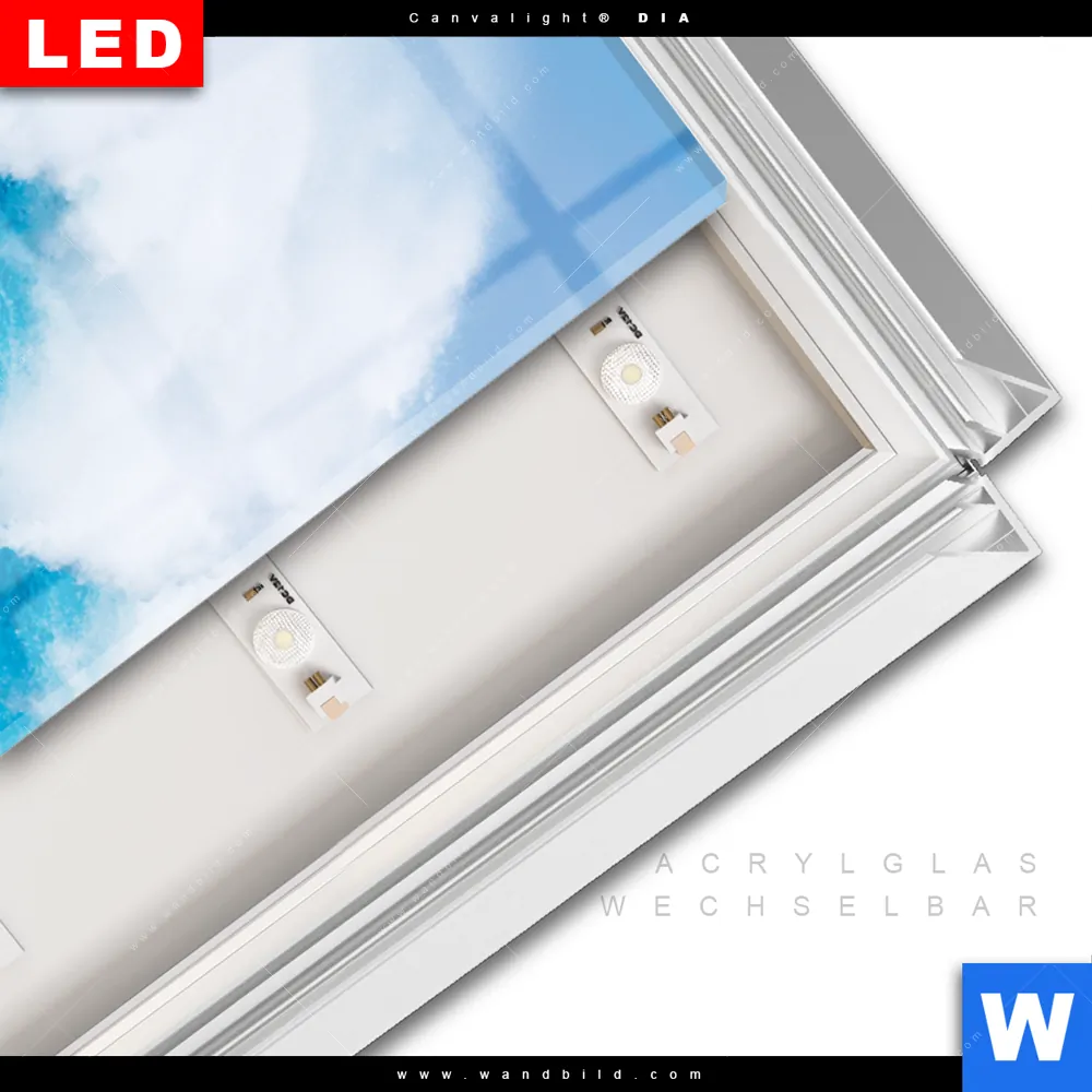 LED-Glasbild mit austauschbarem Acrylglas-Druck (Wechselbild)