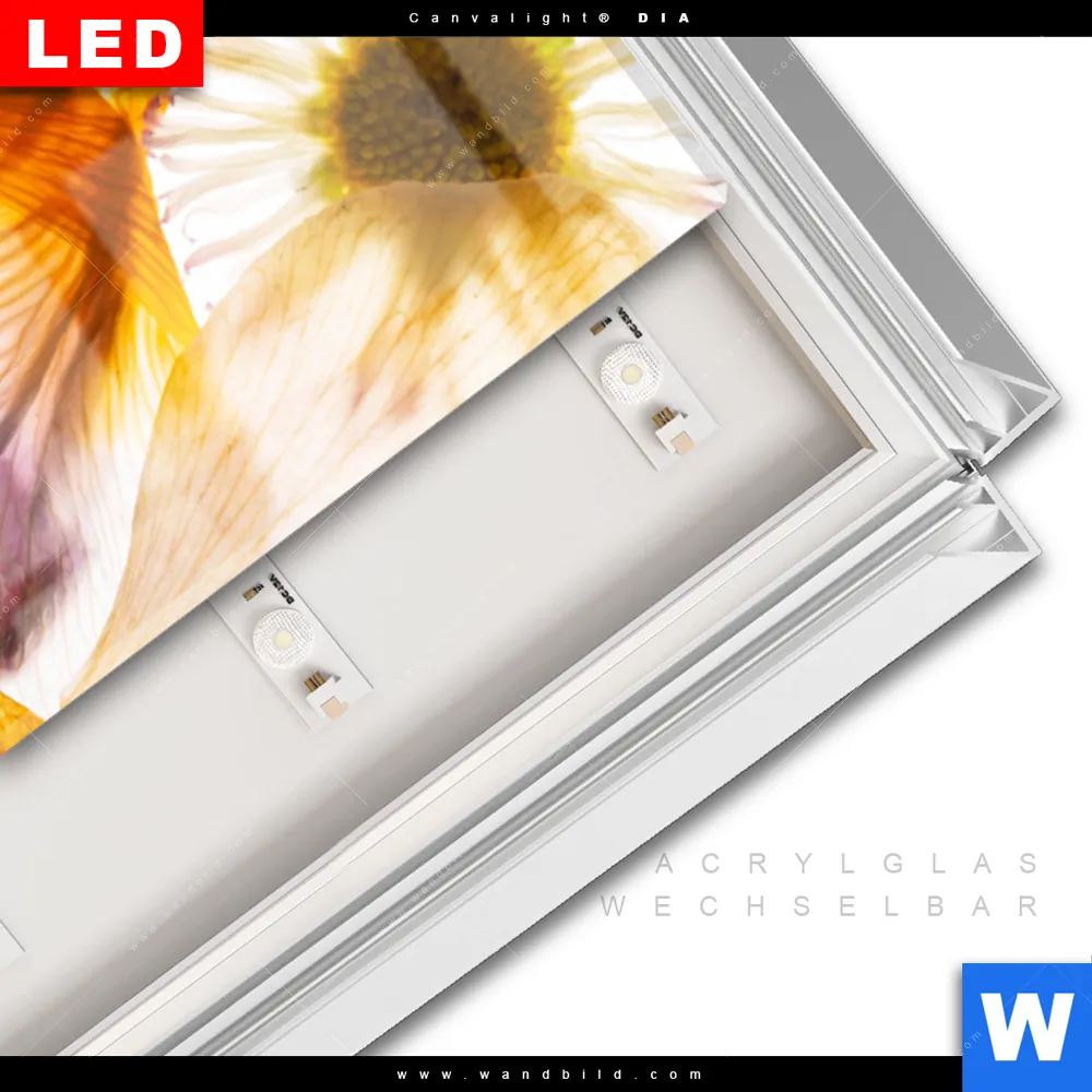 LED-Glasbild mit austauschbarem Acrylglas-Druck (Wechselbild)