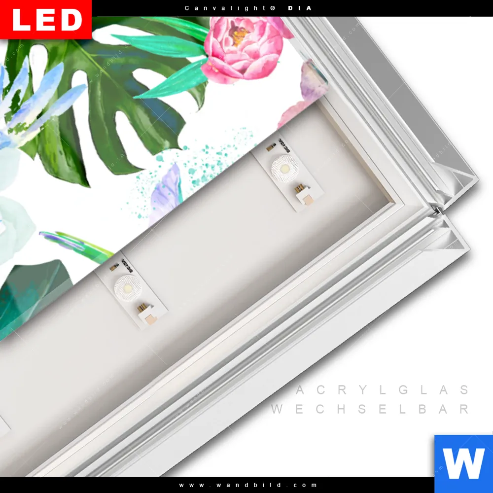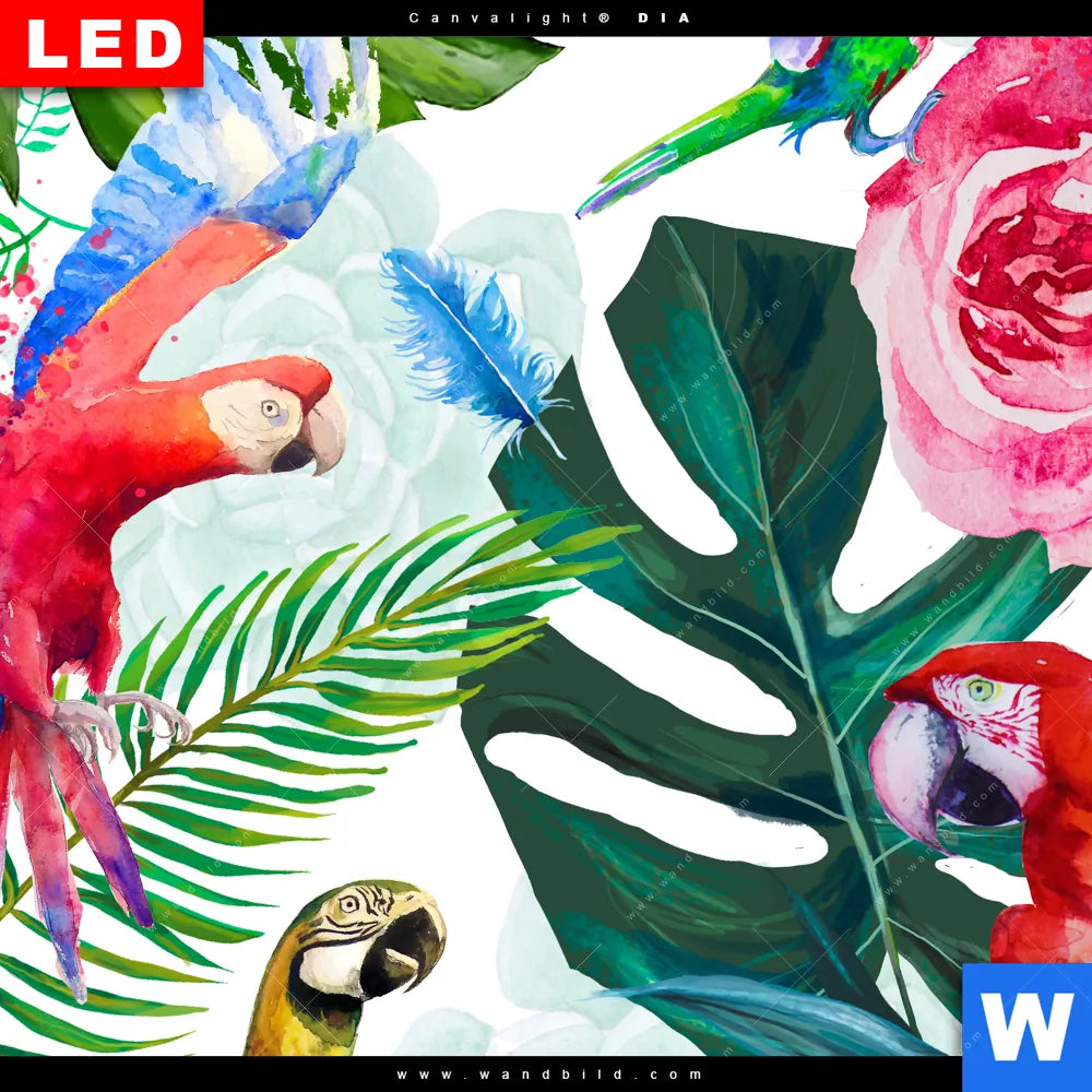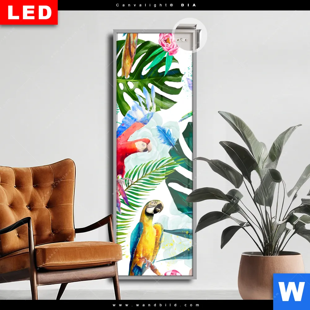 Canvalight® DIA Leuchtbild | Blumen & Papageien Aquarell | Schmal
