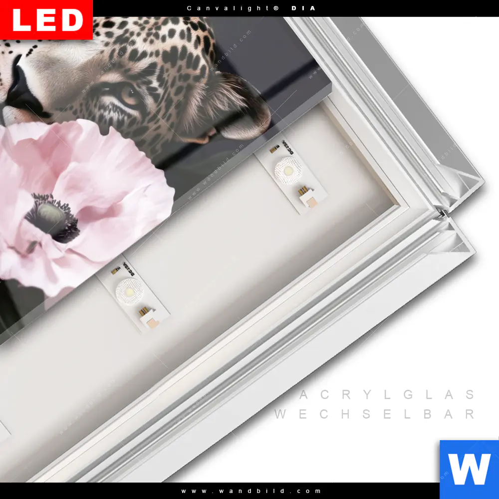 Canvalight® DIA Leuchtbild | Blumen und Raubkatzenmagie | Quadrat