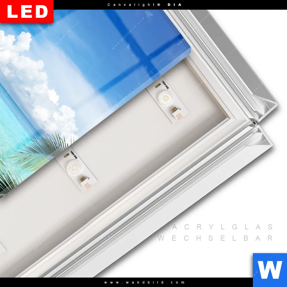 LED-Glasbild mit austauschbarem Acrylglas-Druck (Wechselbild)