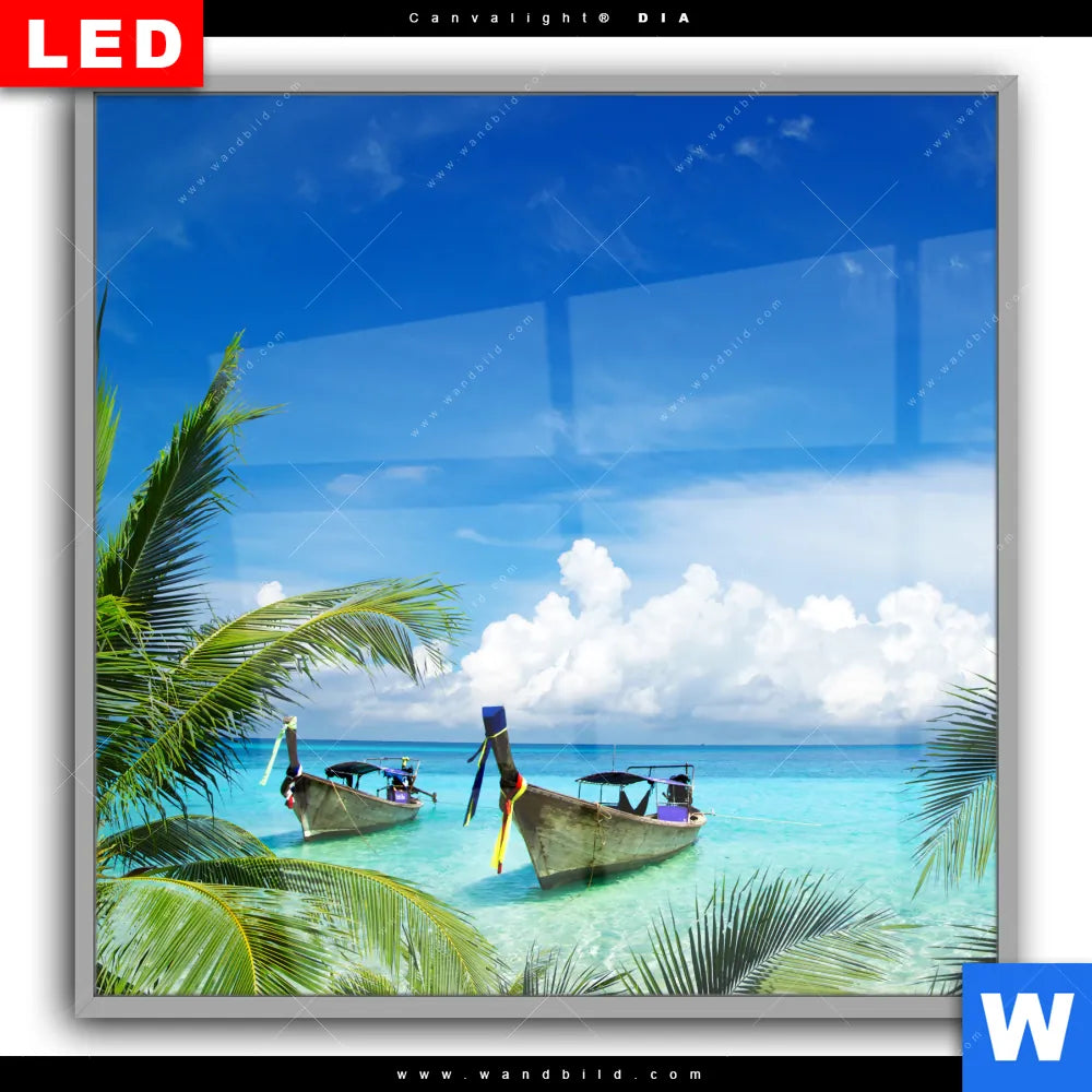 Canvalight® DIA Leuchtbild | Boote im tropischen Meer | Quadrat