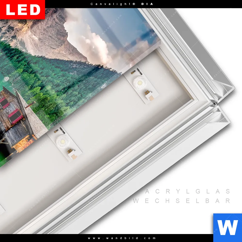 LED-Glasbild mit austauschbarem Acrylglas-Druck (Wechselbild)