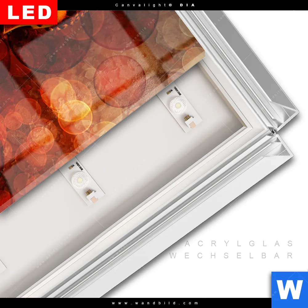 LED-Glasbild mit austauschbarem Acrylglas-Druck (Wechselbild)