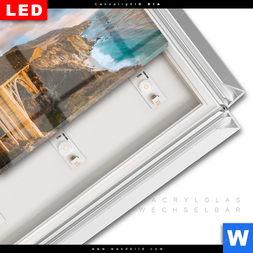 LED-Glasbild mit austauschbarem Acrylglas-Druck (Wechselbild)