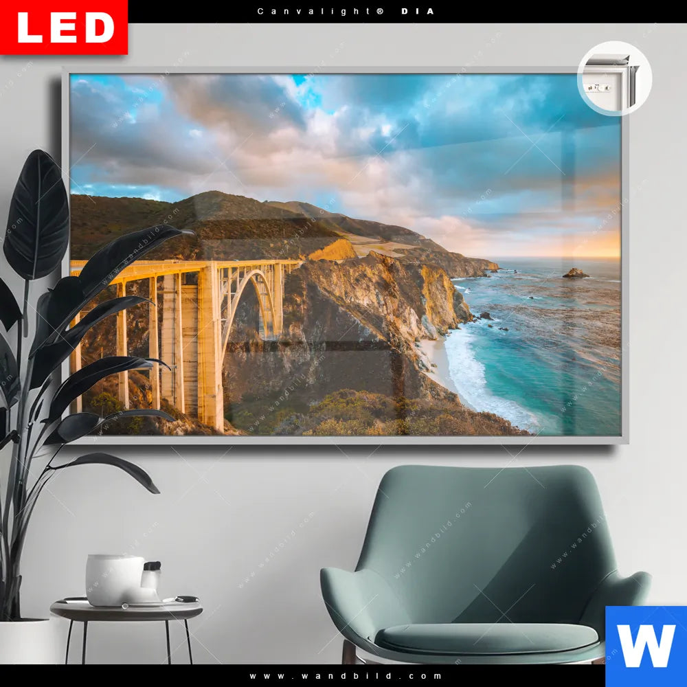 Canvalight® DIA Leuchtbild | Brücke an der Küste | Querformat