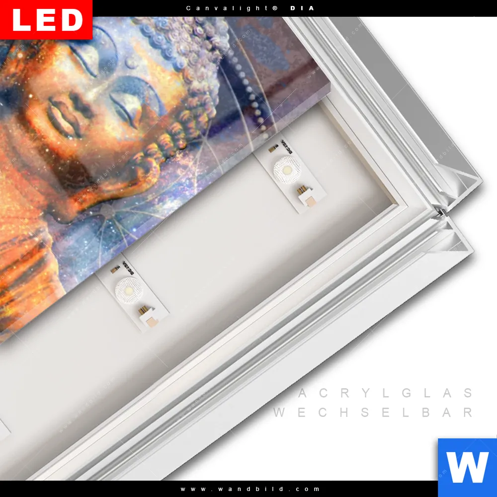 Canvalight® DIA Leuchtbild | Buddha in Meditation | Schmal