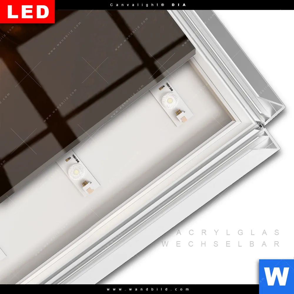 LED-Glasbild mit austauschbarem Acrylglas-Druck (Wechselbild)