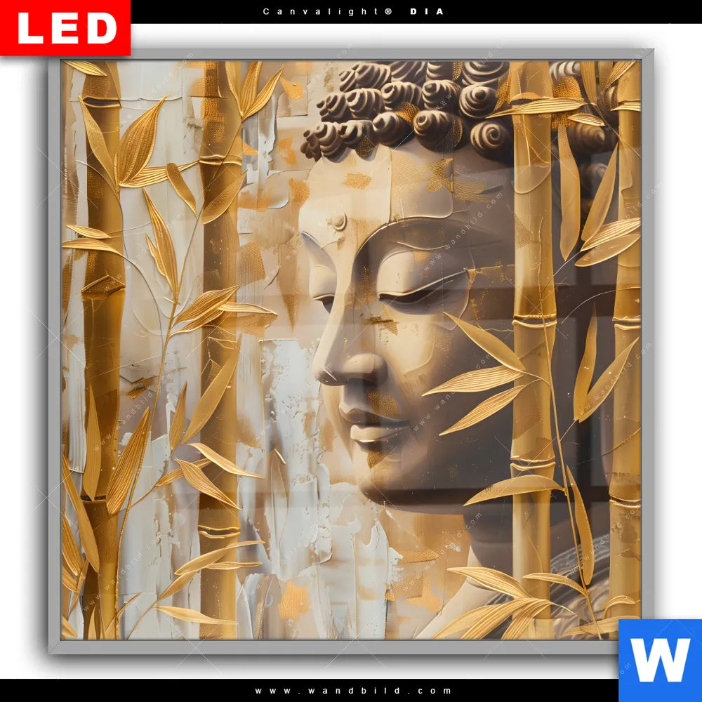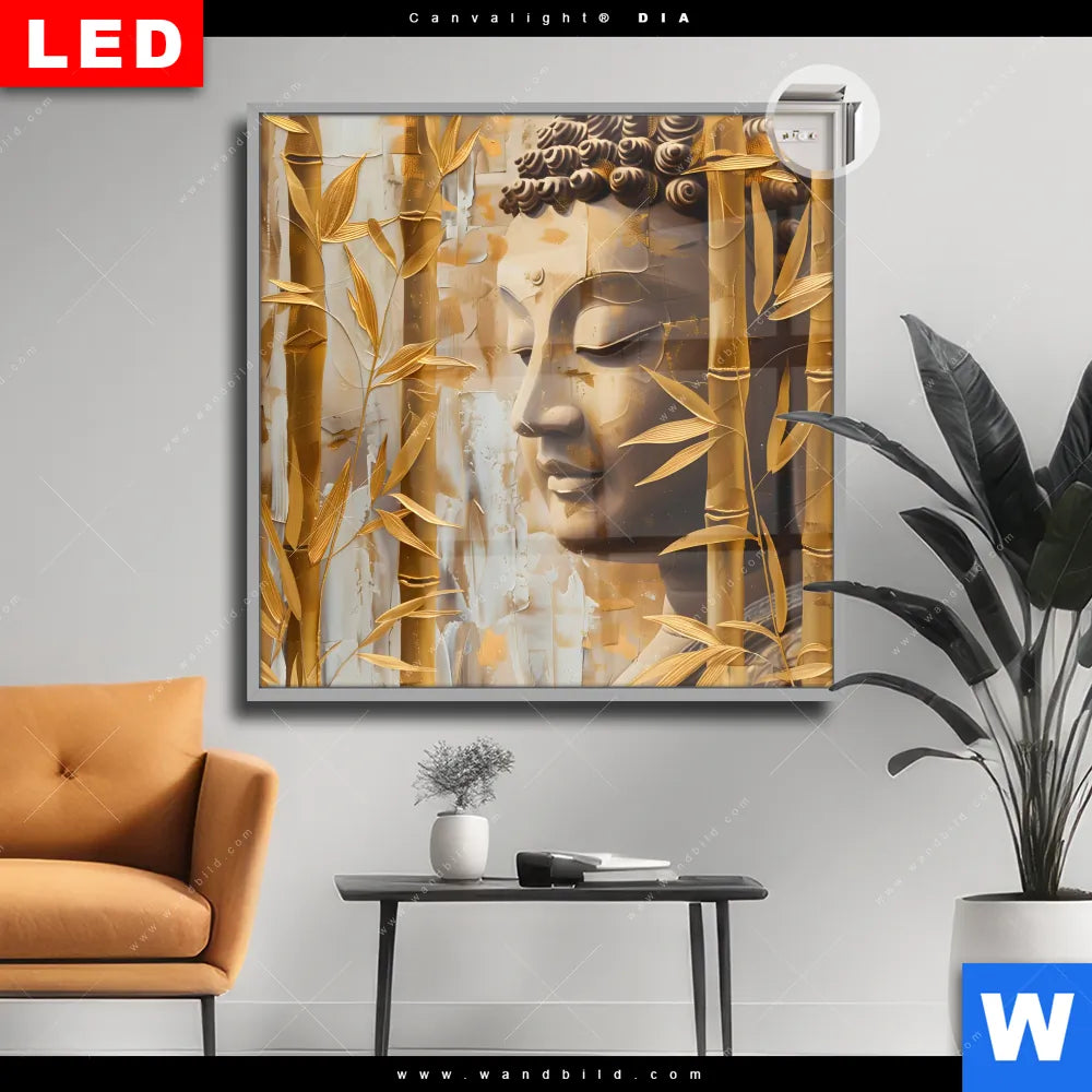 Canvalight® DIA Leuchtbild | Buddha-Statue im goldenen Bambus | Quadrat