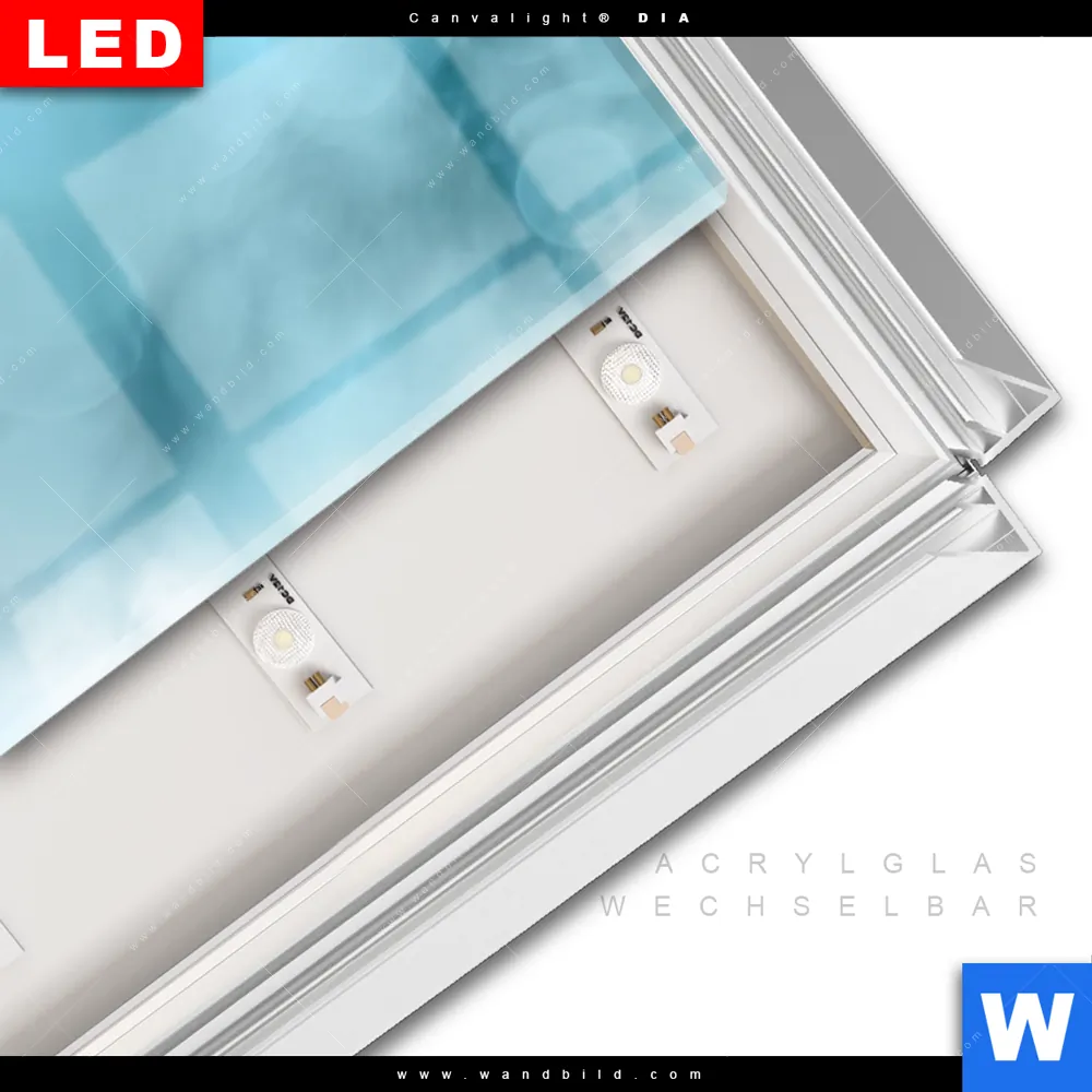 LED-Glasbild mit austauschbarem Acrylglas-Druck (Wechselbild)