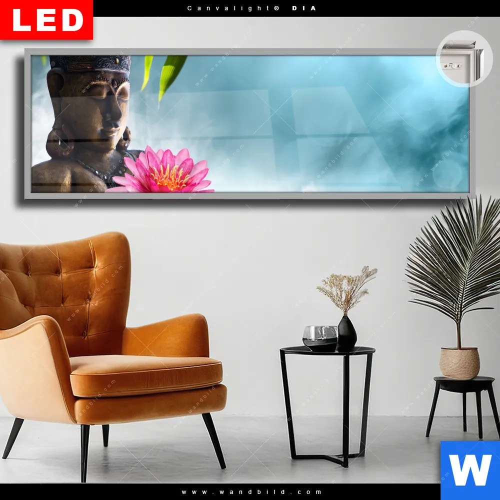 Canvalight® DIA Leuchtbild | Buddha Statue mit Seerose | Panorama