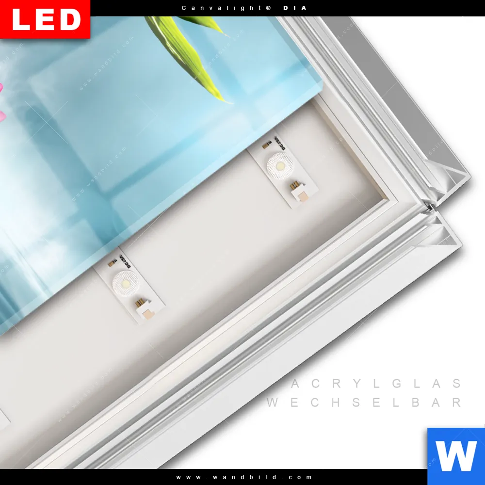 LED-Glasbild mit austauschbarem Acrylglas-Druck (Wechselbild)