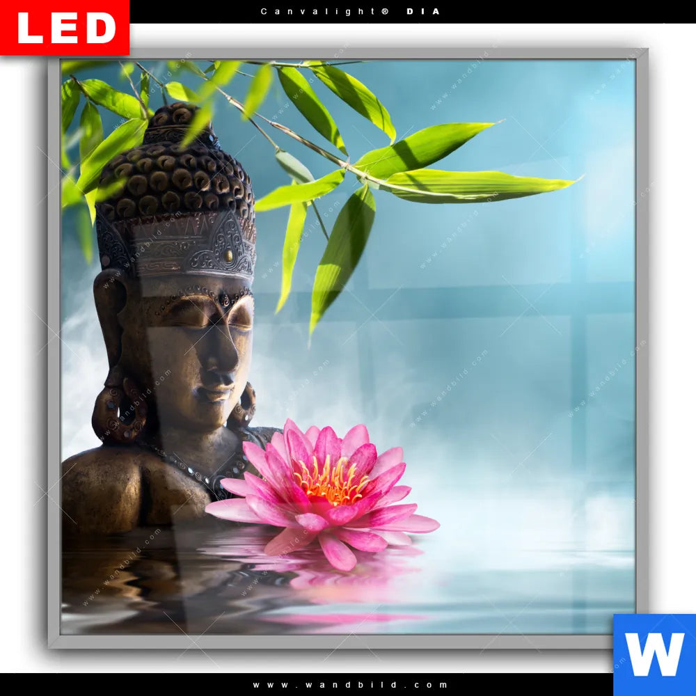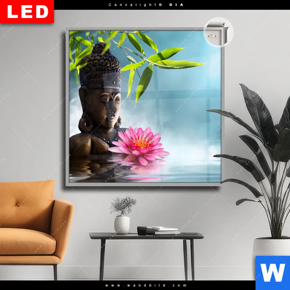 Canvalight® DIA Leuchtbild | Buddha Statue mit Seerose | Quadrat