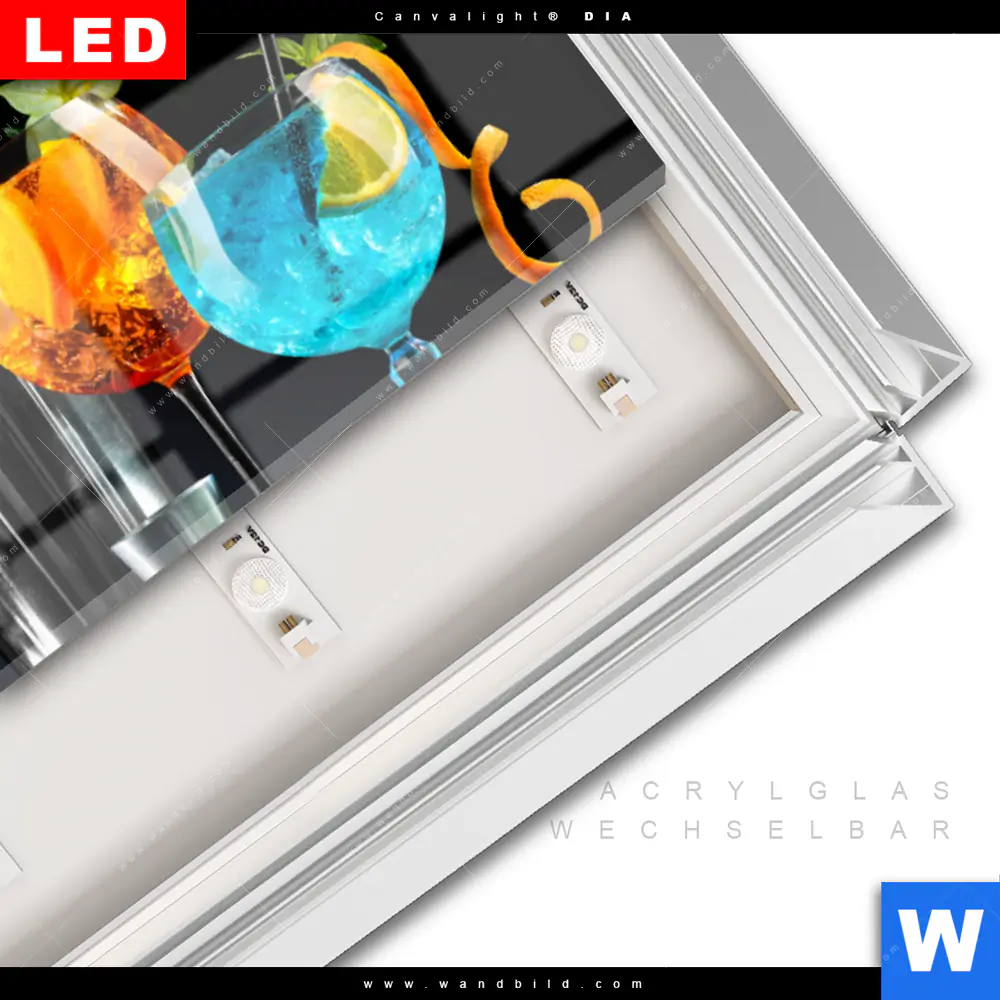 LED-Glasbild mit austauschbarem Acrylglas-Druck (Wechselbild)
