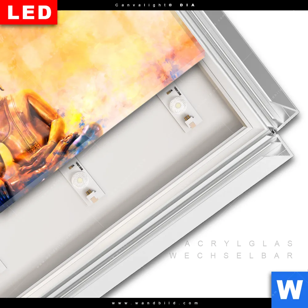 LED-Glasbild mit austauschbarem Acrylglas-Druck (Wechselbild)