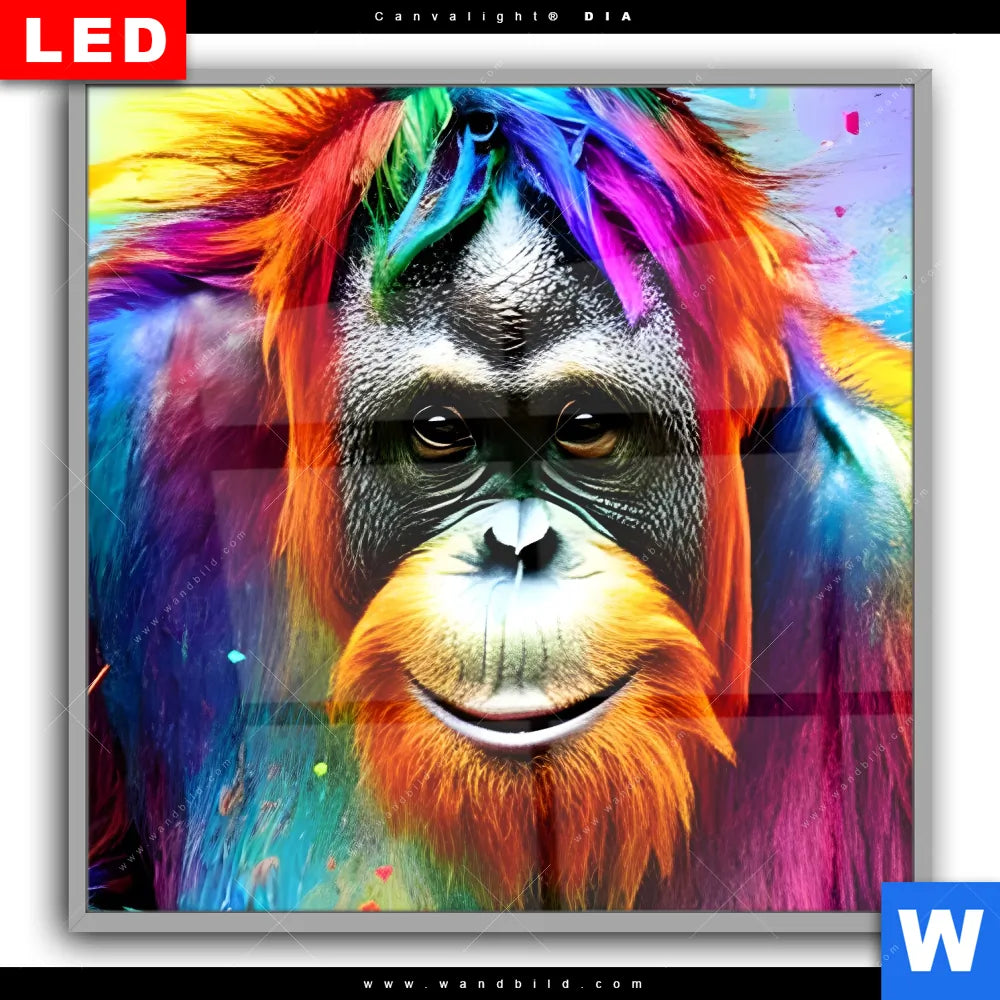 Canvalight® DIA Leuchtbild | Bunter Orang-Utan | Quadrat