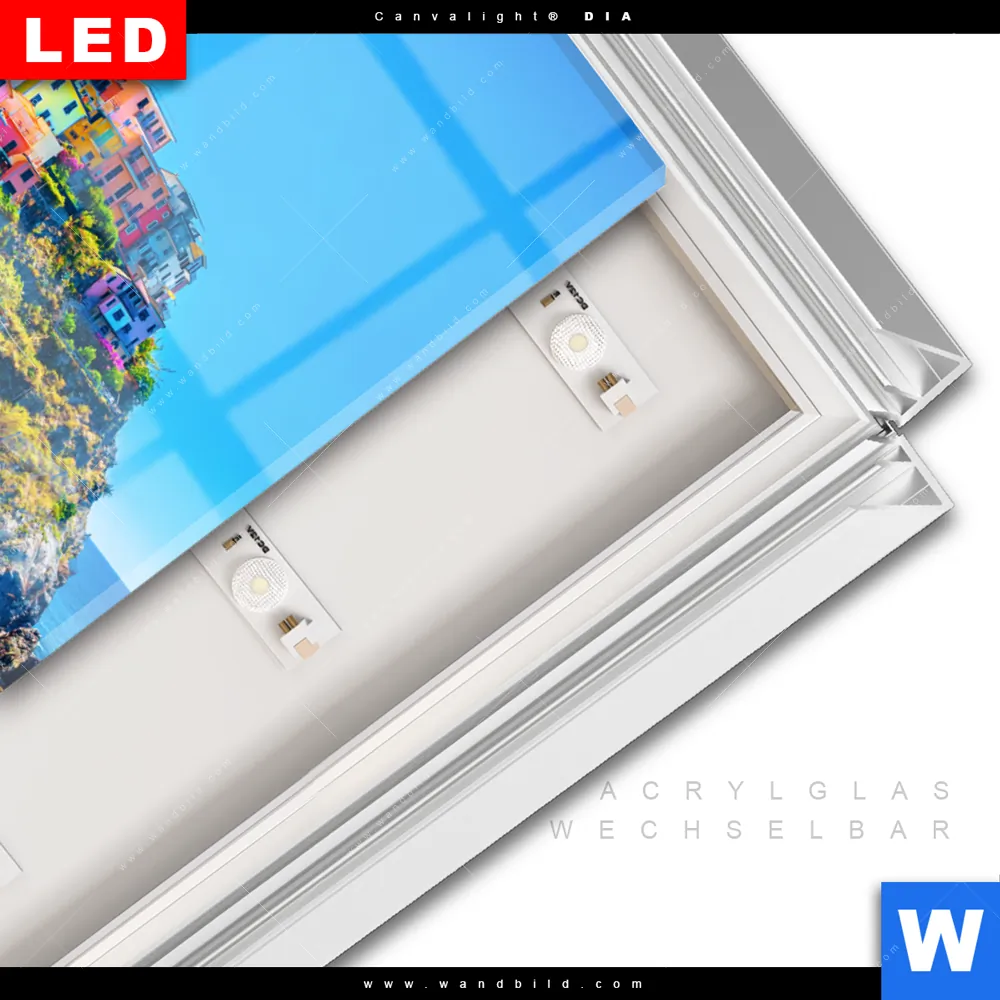 LED-Glasbild mit austauschbarem Acrylglas-Druck (Wechselbild)