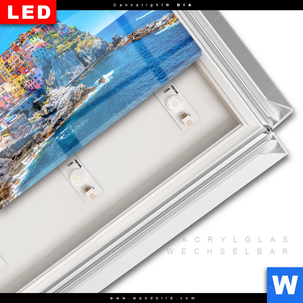 LED-Glasbild mit austauschbarem Acrylglas-Druck (Wechselbild)