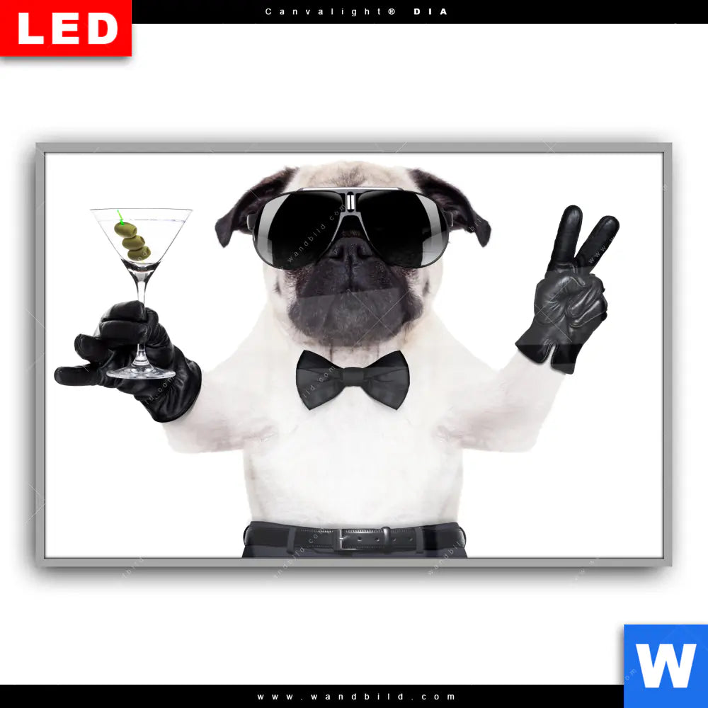 Canvalight® DIA Leuchtbild | Cooler Mops mit Martini | Querformat
