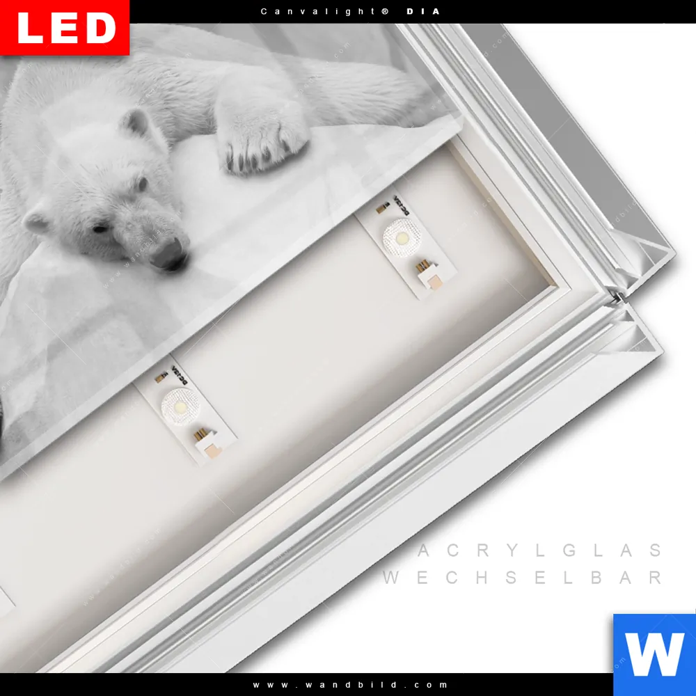 LED-Glasbild mit austauschbarem Acrylglas-Druck (Wechselbild)