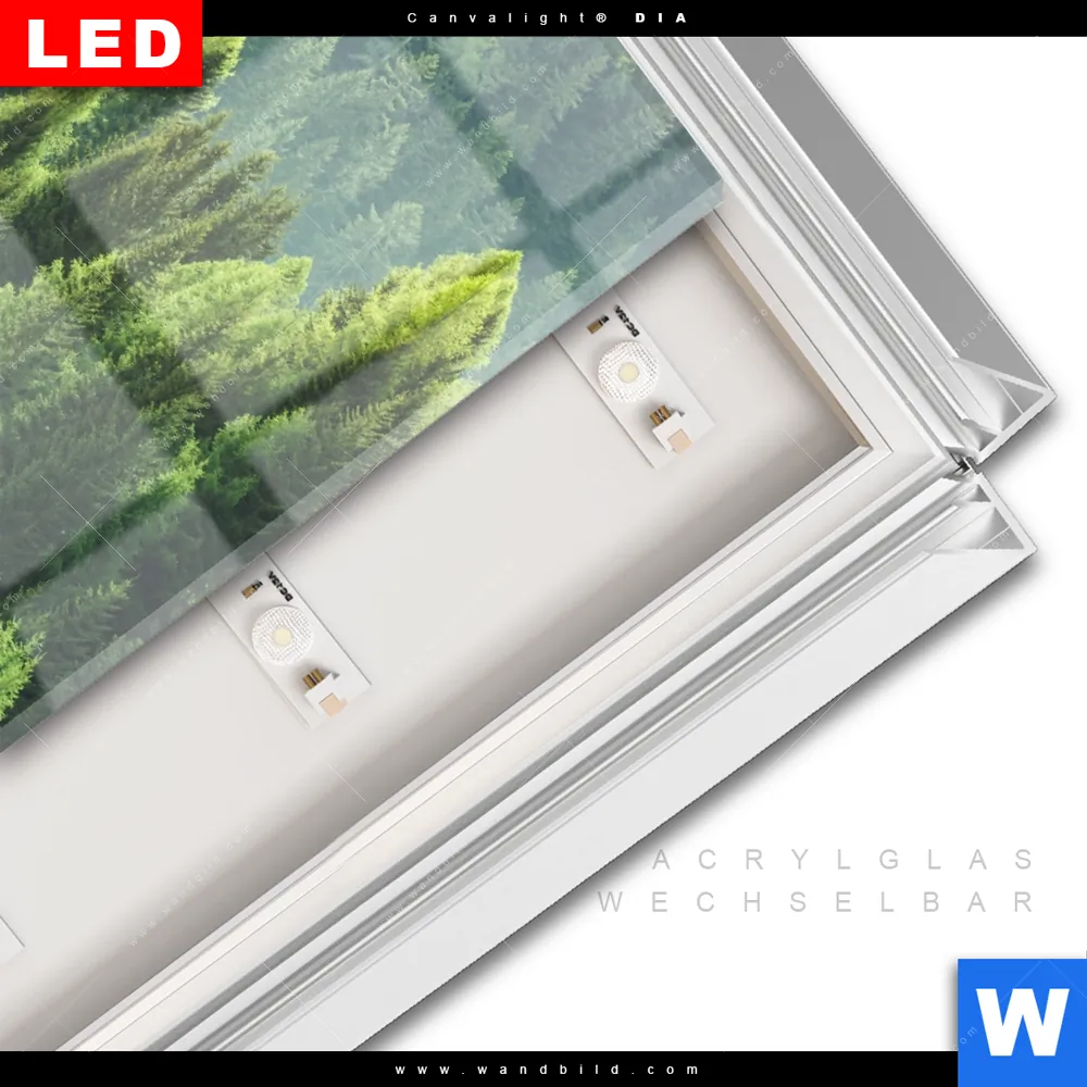 LED-Glasbild mit austauschbarem Acrylglas-Druck (Wechselbild)