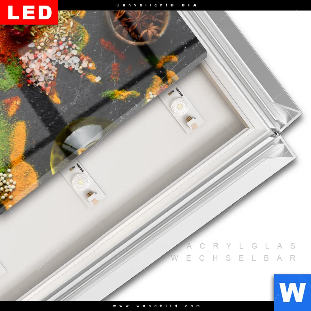 LED-Glasbild mit austauschbarem Acrylglas-Druck (Wechselbild)
